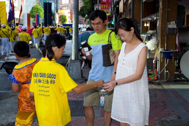 在旁的符先生也表示,“我有朋友炼法轮功,我知道他们是一群修炼真善忍的团体,对身体健康很有好处,又常无私的付出,不仅自己好,对社会、对国家有很大的贡献。在台湾修炼法轮功很自由,也很守规矩,但是相对的在中国大陆就要被打压和迫害。”他对于此次的声援活动表示很支持。