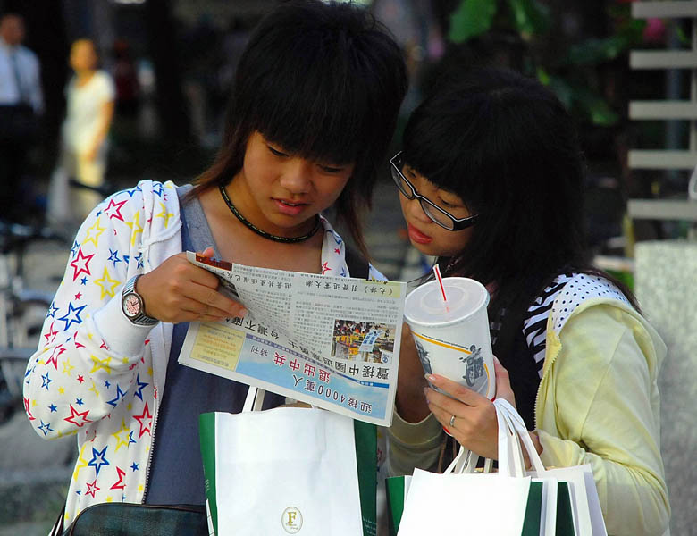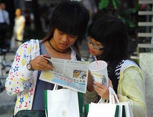 ![]() 拿到真相资料的民众在路边即刻读起资料来 |