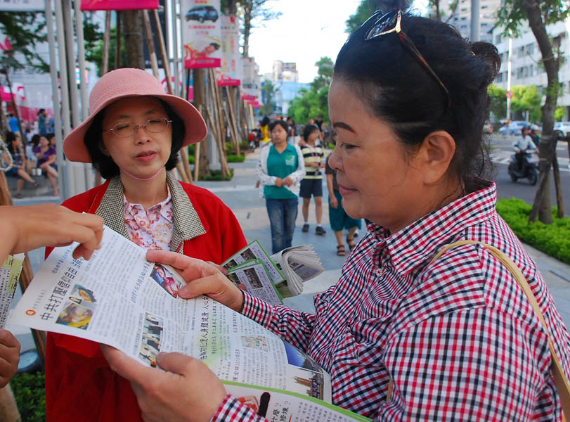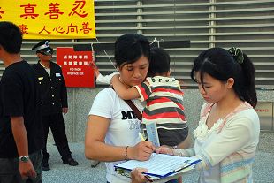 ![]() 市民在百万联署征签中签下自己对法轮功的支持 |