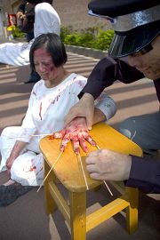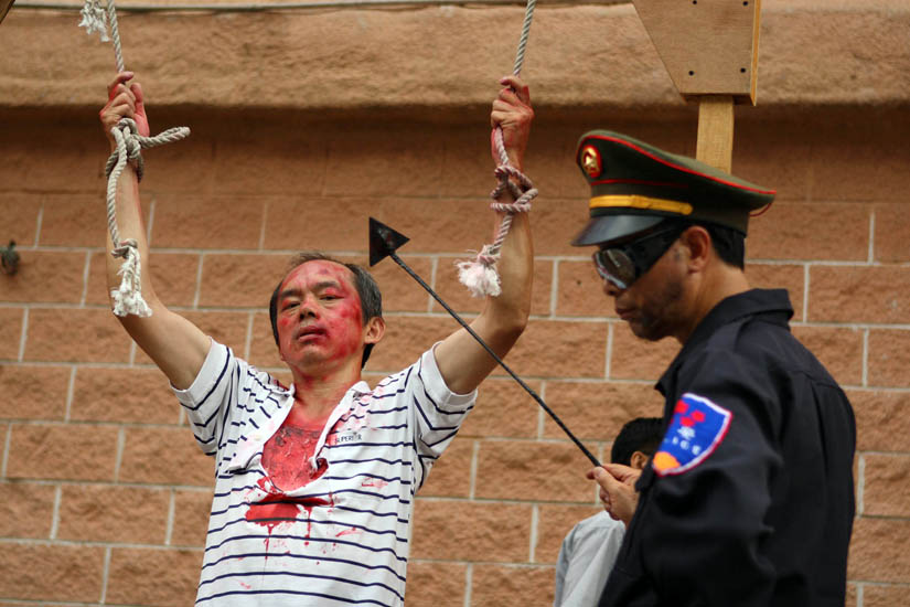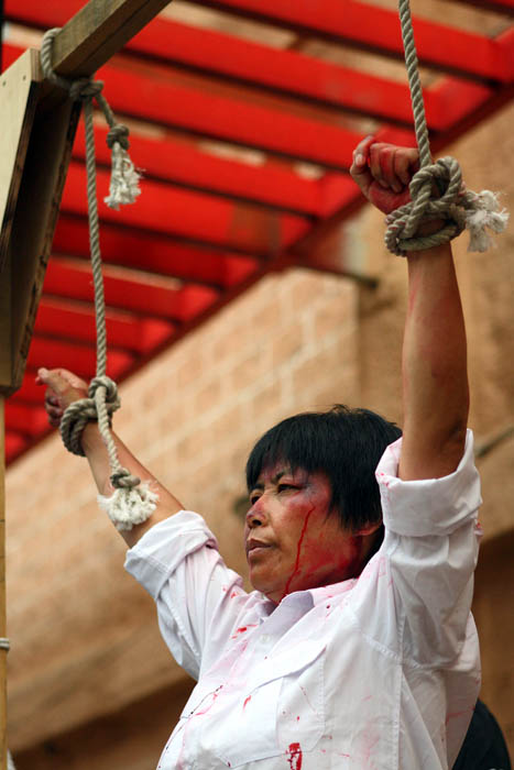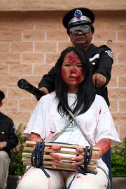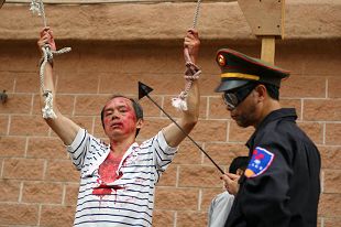 ![]() 以真人模拟演示酷刑的方式,让民众知道中共政权对法轮功的迫害 |