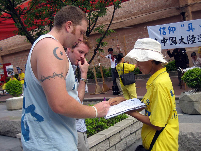 ![]() 西方人士也签名,呼吁制止对法轮功的迫害 |