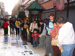 ![]() 秘鲁法轮功学员在唐人社区的甲邦街讲真相 |