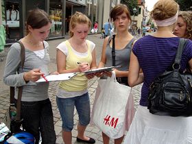 ![]() 逛街的一群女孩一致要求签名反迫害 |