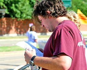 很多拿到法轮功传单的人们在认真阅读传单上的内容。一位美国人向发传单的法轮功学员张女士询问详情,张女士告诉他说:“法轮功在世界上任何一个国家都受到欢迎,因为他教导人们按‘真、善、忍’做好人,使人们身体健康,可是却在他的发源地-中国,遭受着残酷迫害。”那位男士沉吟一下说:“因为中国是共产党(统治),所以才会迫害法轮功!”