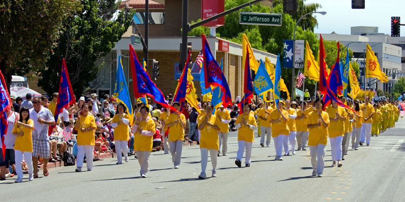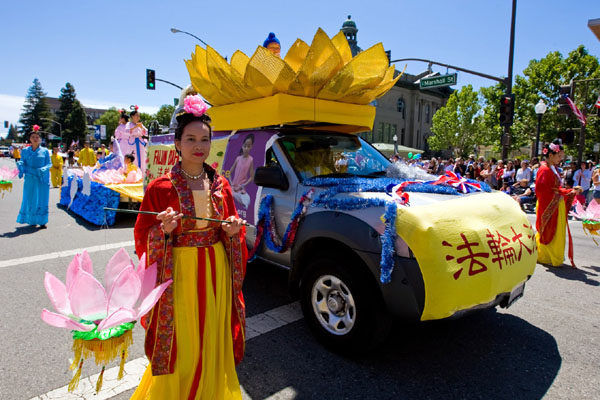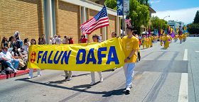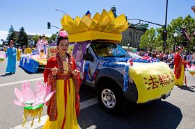 ![]() 法轮功队伍队伍应邀参加红木城游行,广受欢迎。 |