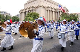 这被选中的二十多个乐队中就包括法轮功学员的“天国乐团”军乐队。住在华府郊区的电脑工程师,法轮功学员王先生说:“游行组织者认为我们代表了中国真正传统的文化,才顶着中共的压力每年都邀请我们。”