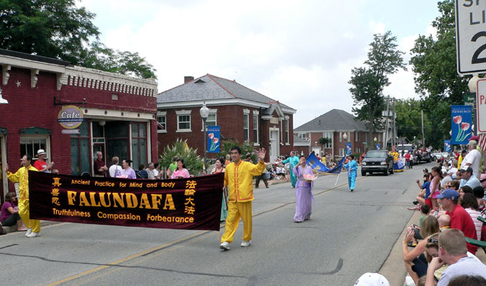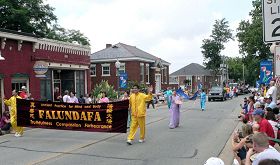 法轮功学员的队伍由横幅、仙女和花车组成,富有东方神韵的展示在游行中格外醒目,令该市的居民们惊叹不已。一路上,人们纷纷向法轮功学员招手致意,并夸赞“太漂亮了!”游行队伍通过主席台时,主持人连声赞叹:“太美了!太美了!”“法轮大法,令身心升华的修炼方法。非常欢迎第一次来这里的法轮大法,希望你们明年再来!”