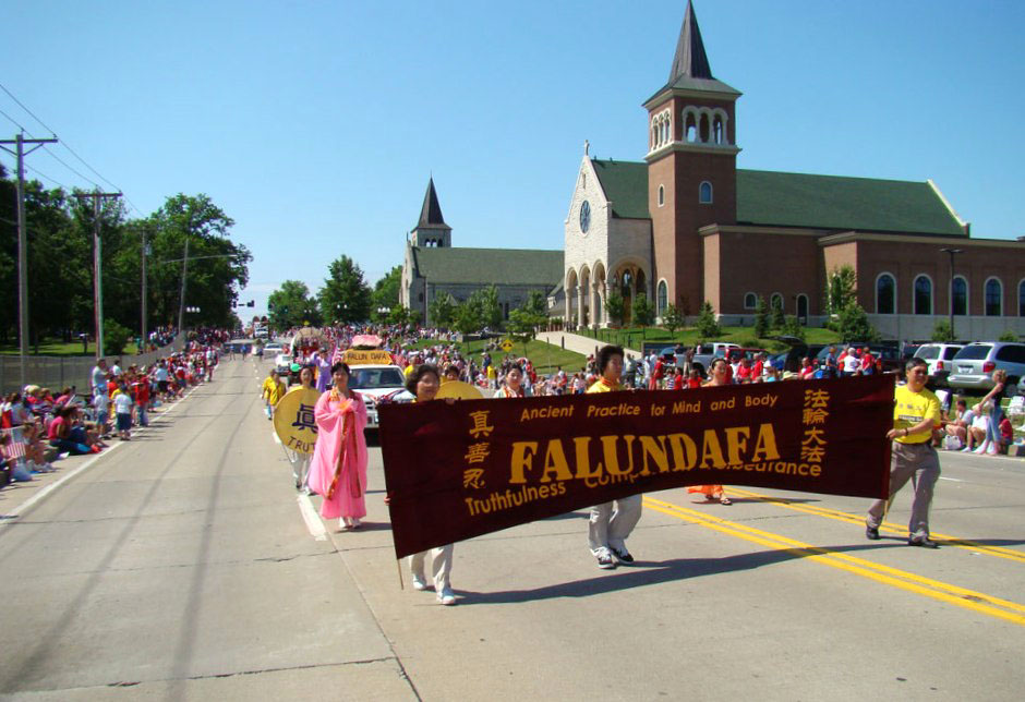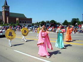 ![]() 法轮功学员参加密苏里州奥法隆市的美国独立日庆祝游行 |