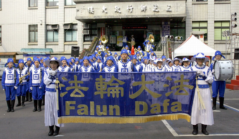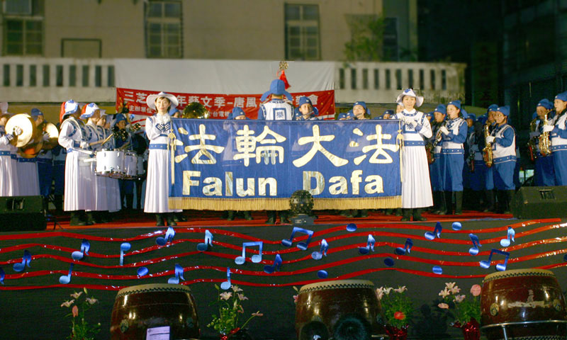 本次艺文季,法轮大法“天国乐团”首次应邀演出,七月五日下午从著名的三芝咖啡街开始游行。身穿古装团服的团员们步伐整齐,尽管大热天仍精神抖擞,一路上吹奏“法轮大法好”、“法鼓法号震十方”、“欢乐颂”等曲目,受到人们的欢迎。