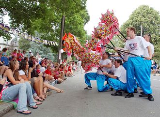 ![]() 法轮功学员的龙舞队和观众互动,欢呼声不断。 |