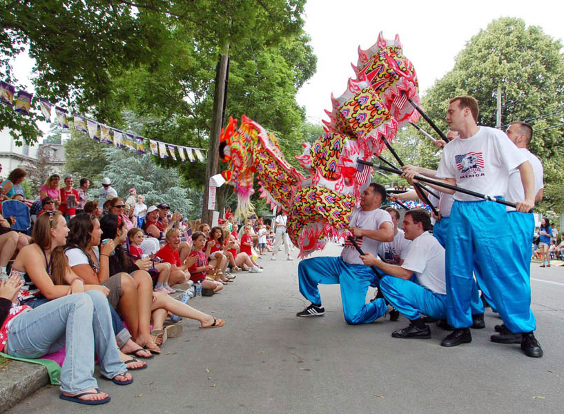 始于一七八五年的罗德岛州Bristol大游行,算是美国最古老的国庆游行了。游行的前一天晚上,观众就开始占据最佳视点,沿途二点四英里的街道两侧挤满了人。