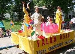 ![]() 法轮功学员参加大堪萨斯城的雷那克萨市(Lenexa)美国国庆日游行 |