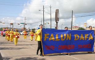 ![]() 休士顿法轮功学员参加爱利芙游行,传播真善忍 |