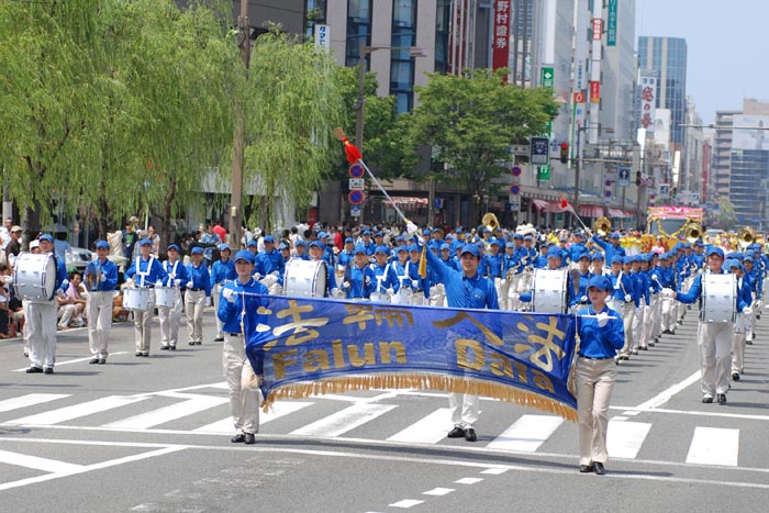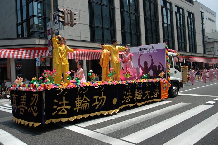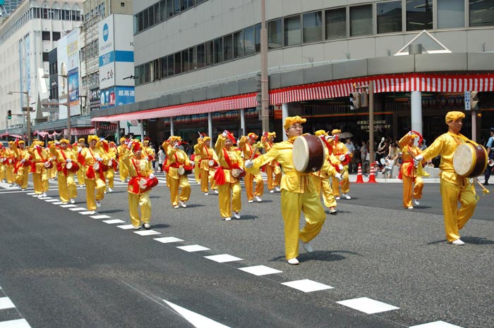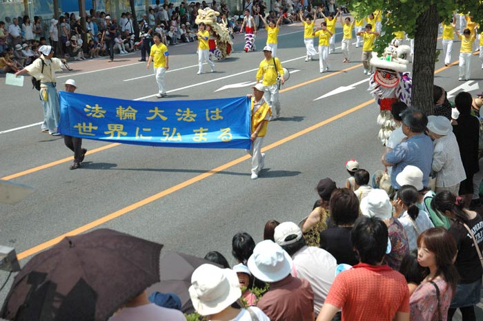 ![]() “新泻节”游行中规模最大的方阵——法轮功学员的队伍 |