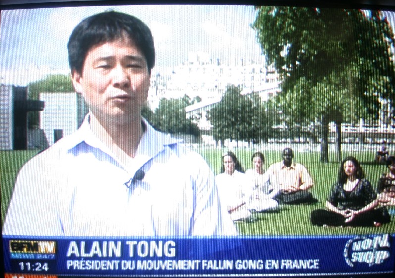 ![]() 法国法轮大法协会主席介绍法轮功(BFMTV电视画面)。 |