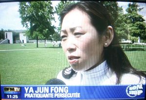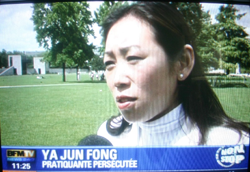 ![]() 法轮功学员冯亚军揭露中共迫害(BFMTV电视画面)。 |
