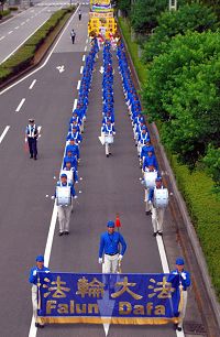 ![]() 法轮功学员在日本千叶县的海滨幕张地区游行,洪扬大法,呼吁制止中共迫害。 |
