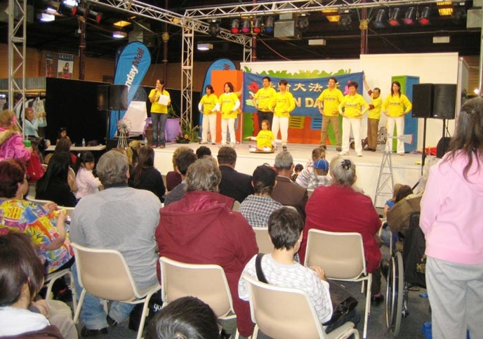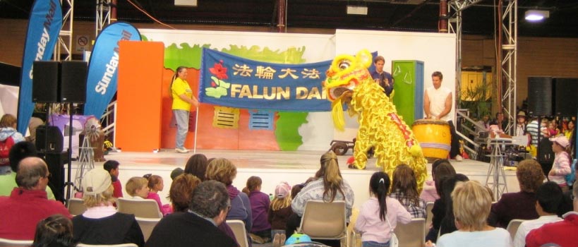 为期十天的布里斯本皇家博览会,是当地居民每年最为期待的盛大活动之一。据澳洲广播公司消息,今年的展览会是自一九八八年来最繁忙的一次,到场人数创下二十年来的最高记录。今年法轮功学员分别在布里斯本农产品展览场(RNA Showgrounds)的国际村(International Village)和羊毛展示馆(Wool Pavilion)的主要舞台进行表演。在人山人海的会馆里,学员们为观众展示了法轮功功法,此外,他们还精心准备了舞狮表演和中华传统舞蹈与澳洲民众分享。