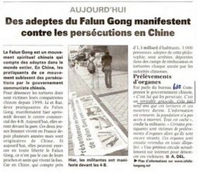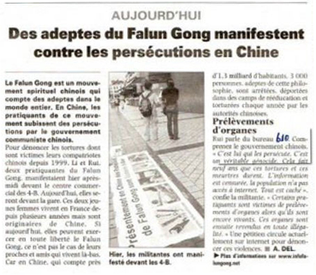 《北方之声》(La voix du Nord)还采访了在4-B商业中心揭露迫害的法轮功学员瑞杨,并揭露中共活摘器官的罪行。