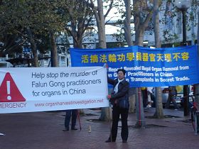 法轮功学员们在那里坚持不懈的为世人展示和讲述着法轮大法的美好和发生在中国的迫害真相。他们有的炼功、发正念;有的手举真相横幅;有的发真相资料和征签。器官移植界的医生们以及路过的人们纷纷表示了关注,并签名呼吁制止迫害。在这里,每天都可以听到、看到许多感人的故事。