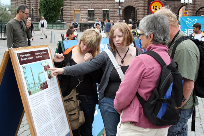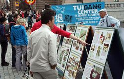 一位住在瑞典的老人看了展板高兴的说,“我很赞同你们,现在瑞典的很多年轻人都不太知道共产党的罪恶,请给我几十份报纸,我要给我周围的年轻人看看,让他们多了解了解。中国人民能摆脱共产党肯定是好事,我相信没有中共之后中国会更好。”