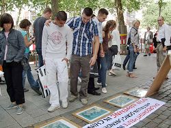 一位推婴儿车的女士看了揭露中共活摘法轮功学员器官的展板,流着泪对学员说:“看了你们的资料,我才知道自己孤陋寡闻。我父母常对我讲起共产党体制下的可怕,但到今天我好象才理解了他们说的那些。我如何才能帮助你们?”