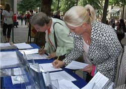 许多人看到 “在奥运会前欧洲卫星公司关掉了独立媒体新!唐!人:电视台对中国的播出”的横幅,非常关注,了解了情况后,马上签名声援新!唐!人:。