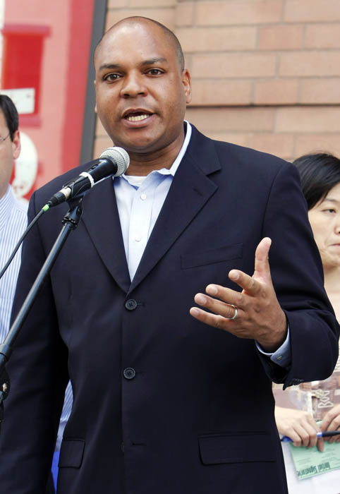 ![]() 代表布碌仑区的市议员戴维•亚斯恺参加了新闻发布会并发表演讲 |