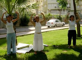 学员们抵达安塔利亚市后,受到了这群邀请他们前来、想要学习法轮功的人们的热情欢迎和接待。在短短两天的时间里,学员们手把手、一个动作一个动作的教会了他们法轮功的全部五套功法。学员们白天和他们一同在公园里炼功,晚上则同他们一起分享各自在修炼过程中的心得体会,并认真、逐一的解答他们提出的与修炼有 关的各种疑问。