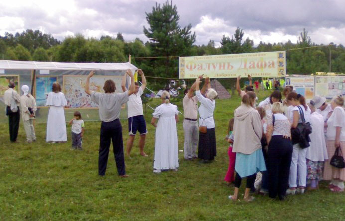 法轮功学员们在三天时间内让远来的客人了解到了法轮大法的美好,向他们展示了五套功法,并教感兴趣的来宾折叠象征修炼人出淤泥而不染的高尚品格的纸莲花。