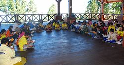 从八月十八日至二十日,台中、云林、嘉义、台南等几个县市的明慧学校的小学生,利用暑假由家长陪同来到阿里山参加“明慧学校阿里山体验营”,也有远从南台湾的屏东赶来的,总共将近一百位的团员。他们都是修炼了法轮功后身体得到健康,思想升华了,因此他们想把法轮功的美好,把大法无辜遭受中共迫害的真相告诉大陆游客。