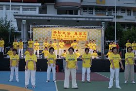 法轮功学员在舞台上演示功法时,主持人也认真的跟着学炼,并表示感觉手心、身体热热的,很不错。主持人还告诉观众们,她听说法轮功对现代人的职业病、文明病治疗效果很好。法轮功这么好、这么正,实在不应当受到中共迫害。