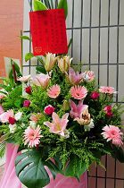 ![]() 行政院蒙藏委员会委员长高思博,花篮祝贺大会成功。 | ![]() 台南市政府劳工处处长郭阿梅,祝贺大会成功。 |