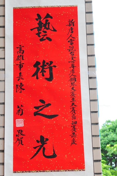 ![]() 高雄市长陈菊,赞大赛是艺术之光。 | ![]() 立委王进士赞赏新!唐!人:电视台世界华人钢琴大赛造就人才。 | ![]() 台南市长许添财、立委赖清德祝贺大赛成功。 | ![]() 台南县长苏焕智、副县长颜纯左祝贺大赛成功。 |