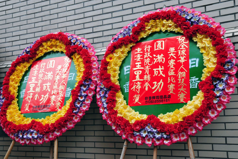 赛事更受到多位政要的祝贺,行政院蒙藏委员会委员长高思博、行政院青辅会主委王昱婷、台南市长许添财、高雄市长陈菊、台南县长苏焕智、副县长颜纯左、立法委员赖清德、王进士、市议员蔡旺诠、陈宗彦、王定宇、曾顺良、萧博仁、中国广播电台台南台台长傅素绢等,都特别透过贺联、花圈、花篮祝贺“全世界华人钢琴大赛”亚太初赛圆满成功。