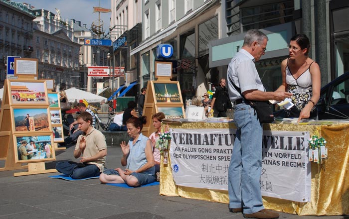 ![]() 奥地利学员揭露中共迫害法轮功的活动现场 |