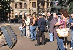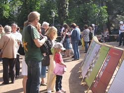 ![]() 法轮功真相展板吸引游客 |