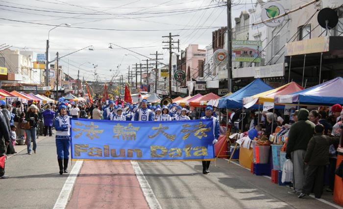 一路上,法轮功学员不断的演奏“法轮大法好”、“法正乾坤”等乐曲,把法轮大法的美好传送给道路两旁热情观赏的民众,受到人们的热烈欢迎。
