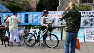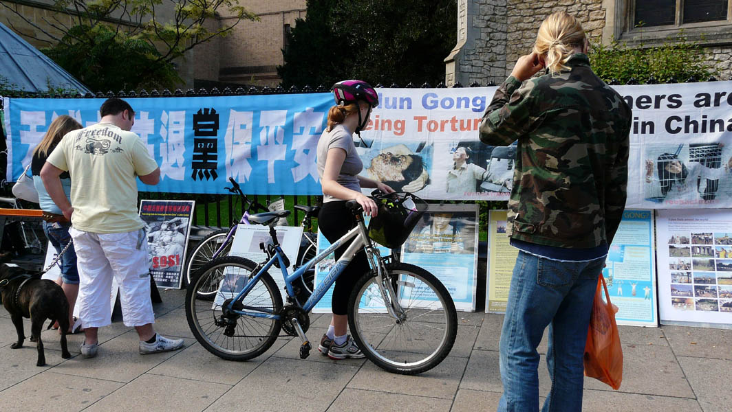 ![]() 法轮功学员在剑桥区繁华地段讲真相 |