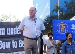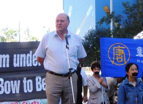 他并敦促澳洲总理和民众关注欧卫事件。“今天上午我在此呼吁澳洲总理,站出来谴责中共干预新!唐!人:在欧卫卫星上的播出。女士们,先生们,这是很严肃的事情,感谢您的支持,让我们共同帮助在中共政权统治下受尽苦难的法轮功学员和其他中国人民。”