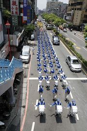 ![]() 二零零八年八月二日中午,法轮功学员举办游行活动,让台北县中和市民得知“真善忍国际美展”在中和市公所展出, |
