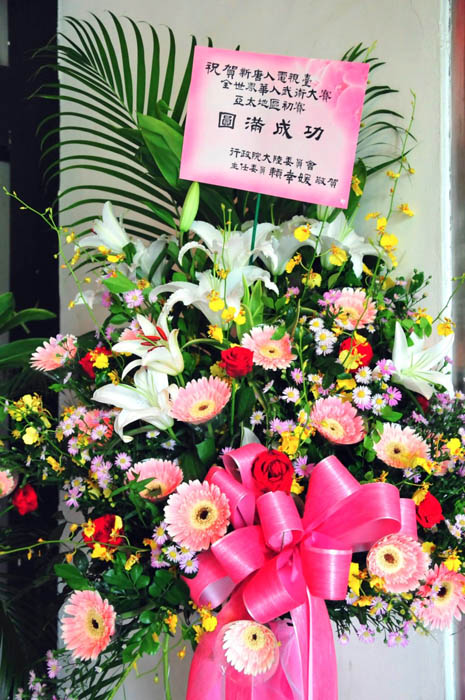 ![]() 交通部长毛治国祝贺花篮 | ![]() 行政院大陆委员会主委赖幸媛祝贺花篮 | ![]() 行政院体委会祝贺花篮 |