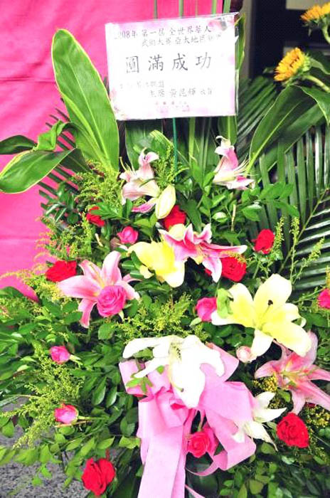 ![]() 台北市议员李新祝贺花篮 | ![]() 立委孔文吉祝贺花篮 | ![]() 台湾团结联盟主席黄昆辉祝贺花篮 |
