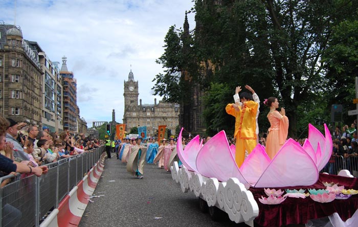 ![]() 多姿多彩的法轮功队伍在爱丁堡国际艺术节上大受欢迎 |
