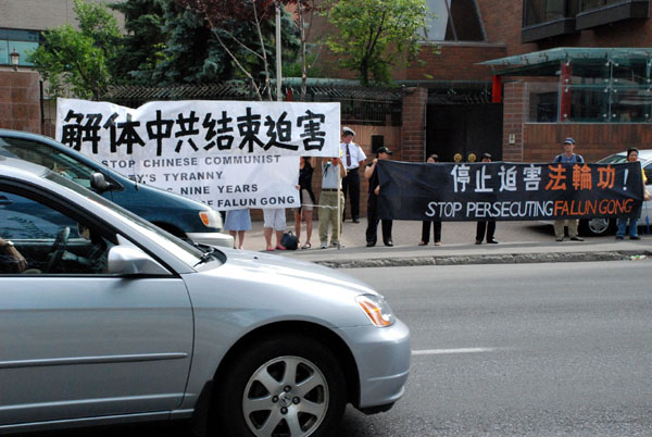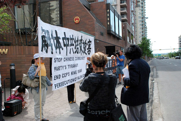 ![]() 卡尔加里法轮功学员中领馆前抗议迫害 |