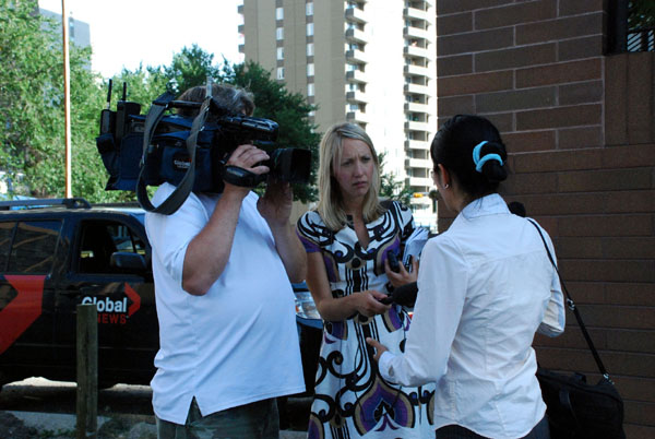 二零零八年八月七日,加拿大卡尔加里法轮大法学会和法轮功受迫害真相联合调查团在中领馆前举行新闻发布会,抗议中共以奥运为借口,加剧迫害法轮功。主流媒体有CTV,GLOBAL TV,Calgary SUN 和Metro等到场进行了采访。