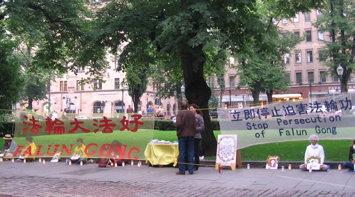 ![]() 芬兰法轮功学员在赫尔辛基市中心悼同修反迫害。 |