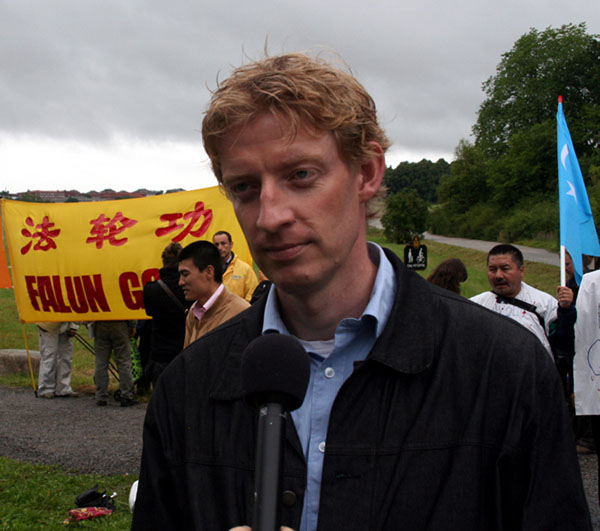 ![]() 记者无疆界瑞典分部主席Jespter Bengtsson在接受媒体采访 |