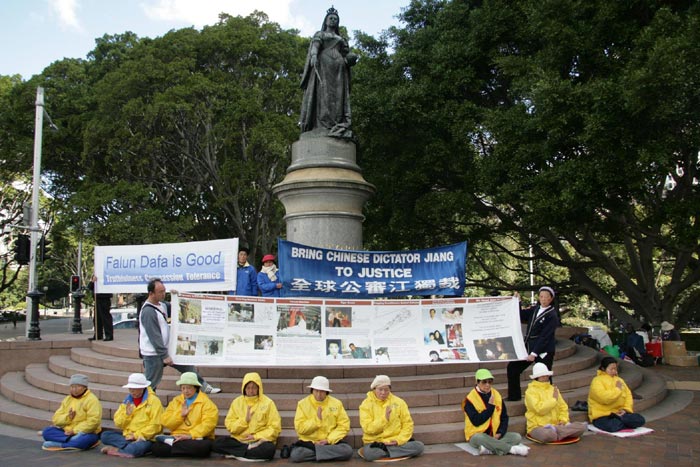在再次开庭到来之前,澳洲法轮功学员每天都在澳洲纽省高等法院外的女皇广场举办活动,炼功、发正念,向当地民众讲述发生在中国的迫害真相。