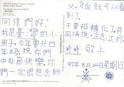 【明慧网二零零八年九月十三日】前几天在台湾的明慧学校,有“中秋节一人一信关心被非法关押同修”的活动,每个法轮大法小弟子都认真的写下了对大陆同修的问候,也为同修们添正念!